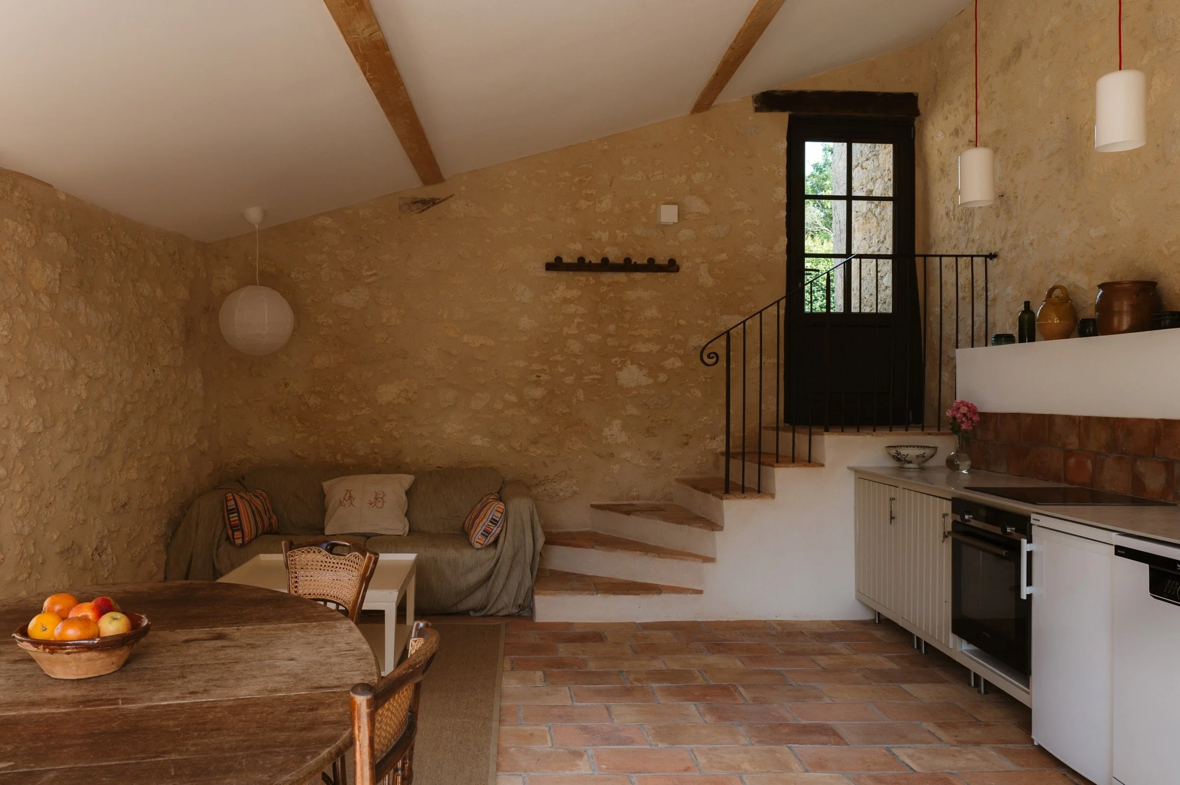 One of the villas is completely private, featuring a bedroom, bathroom, and kitchen. This self-contained villa can accommodate a single guest, couple, or triple, depending on availability. Every villa includes a shared lounge and a fully equipped kitchen, providing space to make a snack unwind and connect between classes and meals.